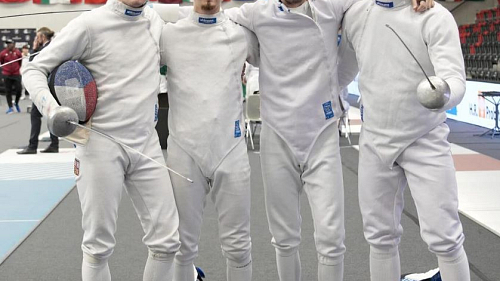 Družstvo ve složení Josef Dáňa, Karel Kolář, Marian Matuška a Matěj Procházka vybojovalo bronz v soutěži družstev, když v zápase o bronz vyhráli o pouhý jeden zásah.